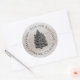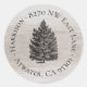 Custom holiday return address stickers personalised with your family name and address or other custom text. This modern rustic design features your text in a circle layout around a Christmas tree graphic on a faux whitewashed wood background. Use the design tools to edit the text fonts and colours or upload your own photos to create a one of a kind round return address label.