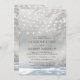 Elegant rustic christmas wedding invitations featuring a frozen white woodland backdrop, a white overlay, string twinkle lights, and a wedding template that is easy to personalise.