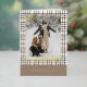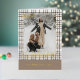 This holiday greeting card stands out with its elegant and unique design. It features a timeless "Happy Holidays" greeting printed in real gold foil, customisable to your preference, on a neutral, natural earth colours plaid pattern design. The front offers space for your family name, photo, and custom seasonal greeting, while the inside is perfect for adding a personalised seasonal message or poem. It's a stylish way to send your holiday wishes.