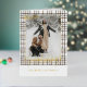 This holiday greeting card stands out with its elegant and unique design. It features a timeless "Happy Holidays" greeting printed in real gold foil, customisable to your preference, on a neutral, natural earth colours plaid pattern design. The front offers space for your family name, photo, and custom seasonal greeting, while the inside is perfect for adding a personalised seasonal message or poem. It's a stylish way to send your holiday wishes.