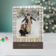 This holiday greeting card stands out with its elegant and unique design. It features a timeless "Happy Holidays" greeting printed in real gold foil, customisable to your preference, on a neutral, natural earth colours plaid pattern design. The front offers space for your family name, photo, and custom seasonal greeting, while the inside is perfect for adding a personalised seasonal message or poem. It's a stylish way to send your holiday wishes.