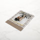 This holiday card stands out with its elegant and unique design. It features a timeless "Happy Holidays" greeting printed in real gold foil, customisable to your preference, on a neutral, natural earth colours plaid pattern design. The front offers space for your family name, photo, and custom season greeting, while the back is perfect for adding a personalised seasonal message or poem. It's a stylish way to send your holiday wishes.