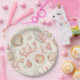 Immerse yourself in the timeless allure of coastal aesthetics with this meticulously crafted paper plate. This paper plate captures the serene beauty of the ocean's treasures, featuring intricately detailed seashells, starfish, and coral reef motifs set against a rustic, vintage-inspired backdrop. The weathered textures and muted colour palette evoke a sense of nostalgia, reminiscent of classic nautical décor. Ideal for enhancing interiors with a touch of seaside charm, this design seamlessly blends natural marine elements with vintage artistry, offering a tranquil and sophisticated ambiance.