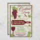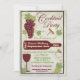 Rustic and Modern Cocktail party invitations featuring a bunch of grapes, vines and leaves with a silhouette of a wine bottle and glass against a antiqued background with a faded sunburst. Wine cork, cork screw and wine stain complete the design. Great for the wine loving bride or a vineyard themed bridal shower or change with wording for a birthday party, retirement or a get together with friends. Hand drawn illustration by McBooboo. Please contact me with any problems, changes or something custom!