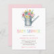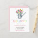 Rustic watering can with beautiful wildflowers bouquet making an elegant modern affordable baby girl shower invitation. ++++++ The card has a white background on the front side and a pastel pink (changeable colour) background on the reverse. It features a fancy hand-lettered script and modern contemporary typography.+++++ Ideal for an outdoor, garden spring or summer elegant country chic baby shower party. ++++++++++ PLEASE READ THIS BEFORE PURCHASING! This is a budget affordable wedding card printed on a paper sheet (each sheet has one card). ++++ For the best rapport price-quality, our advice is to choose the Semi-Gloss paper type (it is thick enough to be used for stationery) ++++ If you need envelopes, choose the ENVELOPE OPTION. +++ Double-check all the information and spelling of your text because you will receive exactly what you see - no one else will check anything before printing. ++++ This card is designed for size 4.5" x 5.6". In the case you choose another size of the card and text goes outside page, everything needs to be fixed before adding the product to cart. Please ask Live Design Service for help.