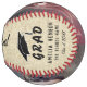 Rustic Congratulations Grad Graduation 2 Photo Softball. Rustic beige background, black graduate cap and black typography. This custom and personalised softball is a perfect gift for a graduate. Personalise it with your photo, graduate name, school name and the year number. You can change any text on the softball.