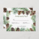 Rustic Pine cone Wedding Invitation rsvp winter wedding reply cards With Names on Back and Conifer Branches Border