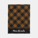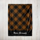 Cosy holiday fleece blanket with a rustic burnt orange and black buffalo check plaid pattern. Personalise it with your name or other custom text. Use the design tools to choose any background colour, edit the text fonts and colours, or add your own photos to create a one of a kind Christmas throw blanket. A special and unique personalised gift!