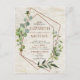Modern and trendy, this postcard wedding invitation design features a faux copper geometric, embellished with watercolor eucalyptus over a faux white birch bark texture. The couple's names and some wedding details are in a matching copper colour, and the back of the postcard features your favourite vertical engagement photo. Copyright Elegant Invites. All rights reserved.