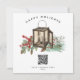A simple and stylish business or company vintage Christmas rustic lantern decorated with pine and berries "Happy Holidays" card design that can be customised to your logo, QR Code and text. Customise further with your own card colour and texture.