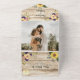 Capture the rustic romance of your special day with our elegant barn wood wedding invitation, blending botanical beauty with modern charm. This stunning all-in-one invitation features a rustic barn wood backdrop adorned with delicate watercolor flowers and cheerful sunflowers, creating a warm and inviting look. The botanical accents add a touch of natural elegance, while the rustic design captures the essence of country-style celebrations.