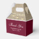 Rustic burgundy wedding thank you favour box inspired by burlap and string lights. These rustic textured wedding favour boxes are perfect for a burgundy rustic country wedding party. Easily personalise our burgundy wedding favour boxes with your event details. These thank you favour boxes can be easily personalised to other occasions, such as rustic bridal showers.