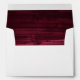 Custom burgundy rustic wedding envelopes with a return address and lined with a burgundy wood grain textured background.