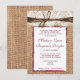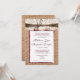 Rustic Country Burlap Lace Look Wedding Invitations with a cranberry accent. This invite has a layered look of burlap print, lace and twine bow (all printed designs, not actual fabric). It also has a distressed cranberry around the wedding invitation text and the wedding invitation wording in the same accented colour. This rustic wedding invitation is a unique combination of digital elements giving it the look of a layered invitation. The backside is a digital design that looks like burlap. Just add your own details to this country wedding invitation template. Great for country weddings, barn weddings, and all the rustic brides.