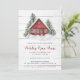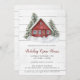 Rustic Country Cabin Holiday Open House Invitation - Our rustic holiday open house invitation features a rustic country watercolor Christmas cabin in the woods surrounded by evergreen pine trees, all covered in snow. The background of the invitation is whitewashed, shiplap wood. Isn't this the perfect invitation for your holiday party? All text is completely editable so it's perfect for any holiday celebration. Our high quality template makes it so simple for you to customise your invitation. Invitation is part of a collection.