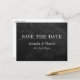 Custom rustic country wedding save the date postcards featuring a black chalkboard background. Easily personalise these rustic chalkboard wedding save the date postcards with your wedding details.