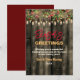 Rustic Country Christmas greenery Holiday greeting card. Rustic christmas winter greeting card featuring wooden and Christmas lights with greenery background, Personalise the details on these fun rustic country Christmas greeting card for your upcoming celebration.