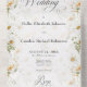 AVAILABLE WITH OR WITHOUT A QR CODE OR DINNER SELECTION OPTIONS. This design features a beautiful background of sweet white and yellow daisies. The text is displayed on a soft white transparent text area. The back continues the daisy background. Created by Simply Farmhouse Press.