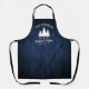 Cook, bake and BBQ in style at your family vacation home with a beautiful, rustic themed chef's apron, featuring your name and "Family Cabin", Ranch, Cottage or other text along with its established date and location if desired. This custom, unique design features rustic country style text with a white silhouette of pine trees on a print of wood planks in rich blue colours. To see more designs like this, feel free to visit my store here at "Zazzle.com/Rustic_Charm". Thanks.