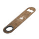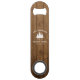 A stylish country rustic themed bar key bottle opener, featuring your name and "Family Cabin", Ranch, Cottage or other text along with its established date and location if desired. This custom, unique design features rustic country style text with a white silhouette of pine trees on a print of wood planks. To see more designs like this, feel free to visit my store here at "Zazzle.com/Rustic_Charm". Thanks.