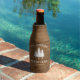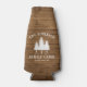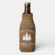 Personalize your country home with beautiful, rustic themed, bottle coolers, featuring your name and "Family Cabin", Ranch, Cottage or other text along with its established date and location if desired. This custom, unique design features rustic country style text with a white silhouette of pine trees on a print of wood planks. To see more designs like this, feel free to visit my store here at "Zazzle.com/Rustic_Charm". Thanks.
