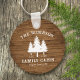 Personalize your country home keyring with a beautiful rustic themed keychain, featuring your name and "Family Cabin", Ranch, Cottage or other text along with its established date and location if desired. This custom, unique design features rustic country style text with a white silhouette of pine trees on a print of wood planks. To see more designs like this, feel free to visit my store here at "Zazzle.com/Rustic_Charm". Thanks.