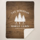 Personalise your country home with a beautiful rustic themed large Sherpa blanket, featuring your name and "Family Cabin", Ranch, Cottage or other text along with its established date and location if desired. This custom, unique design features rustic country style text with a white silhouette of pine trees on a print of wood planks. To see more designs like this, feel free to visit my store here at "Zazzle.com/Rustic_Charm". Thanks.