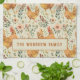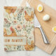 A cute rustic country farm kitchen towel with painted hens and flowers and your family name, with an earthy vibe.
