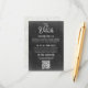 Stylised chalkboard layout with QR code on the front. Elegantly light weathered barn wood on the back. This versatile card can complement a variety of wedding designs and styles, but it's especially nice for a rustic country farm style celebration.