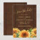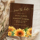 Rustic wood watercolor sunflowers chic summer or autumn fall elegant country barn wedding save the date card with a trendy handwriting faux gold calligraphy script and brown yellow rust terracotta color palette. ++++++++++++++++ Easy to personalize with your details!