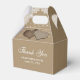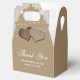 Put your wedding gifts inside these custom rustic kraft paper wedding favour boxes featuring white floral lace and fairy lights. Easily personalise these rustic textured wedding favour boxes with your wedding details. Our rustic country wedding favour boxes are perfect for your romantic rustic country wedding party. These personalised thank you favour boxes can be customised to other occasions, such as bridal, or baby showers. Kraft paper texture is only simulated in the artwork.