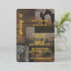 Bring your rustic wedding dreams to life with this boho-chic card. The front showcases a charming country collage — think cowgirls, horses, wooden elements, and a lively cowboy amidst nature's beauty. The warm brown tones perfectly complement the real golden foil, creating an effortlessly elegant vibe for your country-themed rustic celebration.