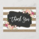 Rustic Country Linen Burlap Floral Thank You Postcard