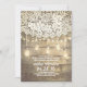 Rustic Country Mason Jars Lights Lace Wood Wedding Invitation