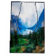 A gift bag with a beautiful photograph of a pleasant and tranquil nature scene. Vibrant green forest in the front and shadowy blue mountains in the back. With a dreamy cloudy white sky. Misty and magical feel.
