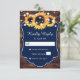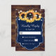 Rustic Country Navy Blue Wood Sunflower Wedding RSVP Card