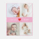 Celebrate your newborn with these unique and adorable photo collage baby blankets for friends and family. Customise it with your 4 favourite photos and personalise it by changing the images. This new baby blanket is a perfect keepsake gift for new parents or grandparents.