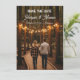 A warm and cozy rustic Save the Date design featuring a couple walking hand-in-hand along a wooden pathway surrounded by nature. Ideal for barn weddings, countryside ceremonies, fall weddings, and outdoor-loving couples.