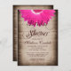 rustic, country, bridal shower, brown, vintage, distressed, barn wood, rustic wood, elegant, old, antique, western, cowboy, barn wedding, elegant, floral, flowers, daisy, pink daisy, hot pink daisy, floral, flowers, bridal shower invitations, flower