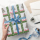 This cute rustic holiday Christmas wrapping paper is sure to give your guests a smile with it’s fun and homey design. It features a Christmas tree with a red and green plaid pattern surrounded by a festive green square border. The red text underneath reads “Merry Christmas.”