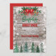 Rustic Country red bow tie Holiday Christmas party greeting card. Rustic christmas winter party invitations featuring wooden and snowflakes, greenery, cute red bow and Christmas trees, Personalise the details on these fun rustic country Christmas party invitations for your upcoming celebration.