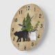 Rustic Country Silhouette Bear and Trees Mountain Large Clock