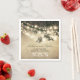 Gorgeous and romantic paper napkins with rustic string lights hanging on the old oak tree branches.