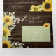 Rustic Watercolor Sunflower Wedding all in one Tri-fold invitations that come with response cards RSVP, Details and info and a photo of the couple. Features bouquets of yellow sunflowers on a dark rustic wood background. Perfect for an outdoor, barn, country or nature wedding!