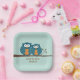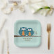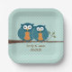 Rustic Country Teal Cute Owls Sitting in a Tree P Paper Plate