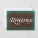 This wedding reception card has a vintage antique distressed turquoise and brown background. Depending on the type of paper ordered, the colour may appear aqua green more than turquoise teal blue. Great for country weddings, barn weddings, and cowboy weddings. Choose from square or rounded corners. Just add your receptions details to the back of the card.