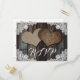 Custom rustic country wedding RSVP postcard with meal selections featuring two burlap hearts on a rustic wood and lace background. Matching items available.