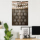 Rustic country wedding seating table chart poster featuring a barn oak barrel background, twinkle string lights, and your monogram.