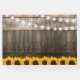 SUNFLOWER VINEYARD WEDDING GUESTBOOK | Country barn dark oak barrel background, twinkle string lights, golden yellow sunflowers, your monogram and modern wedding wording. Find other wood wedding invitations at http://www.zazzle.com/special_stationery