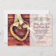 These country western wedding invitations feature a two hearts made from grape vines tied together with white tulle and hanging with tulle on a background of rustic dark stained barn wood planks with distressed knots and wood grain accents. These country wedding announcements are perfect for country style weddings, barn weddings, and rustic weddings. The same country western heart on dark stained barn wood design is on the back of the wedding announcement in full colour. Just add your wedding invitation wording to the template fields. Use the "Customise It" button if you need to move things around or change font style or font colour.